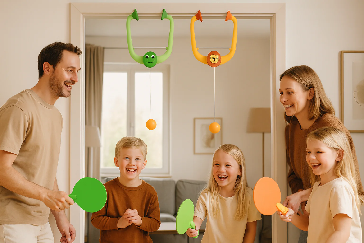 - 🏓 Kompaktowy i łatwy w montażu – szybki montaż na ościeżnicy i natychmiastowa gotowość do zabawy.