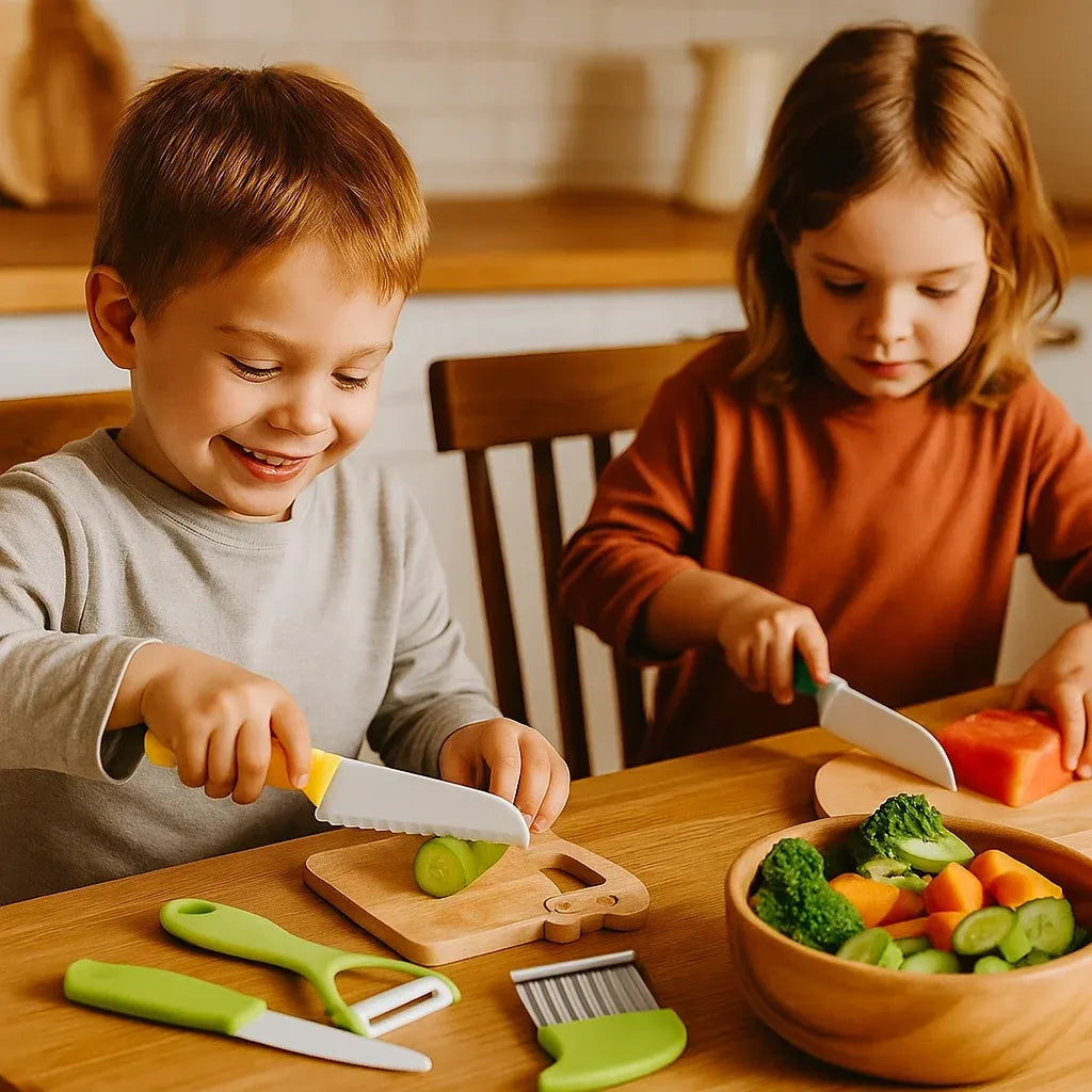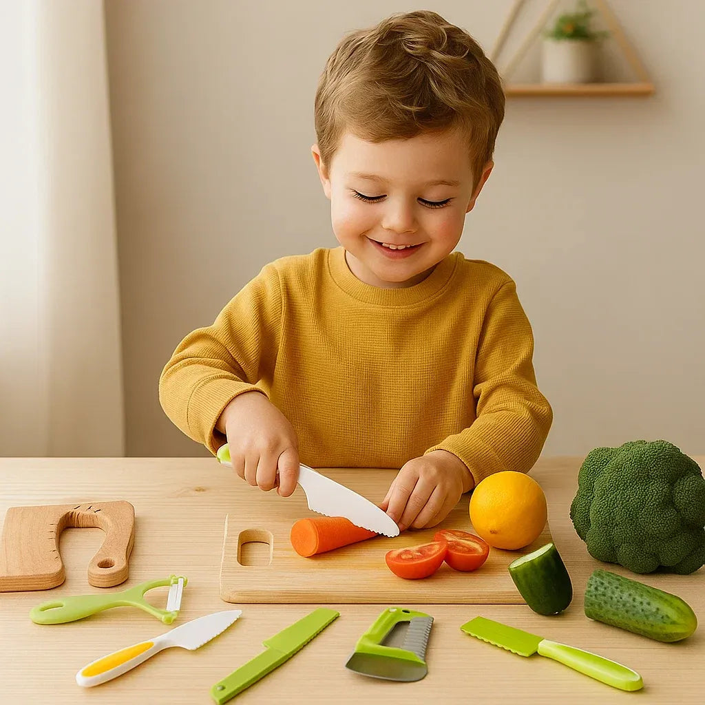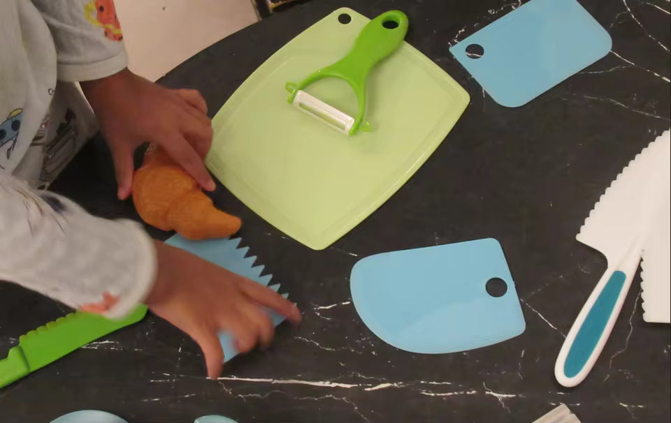 Zestaw noży do krojenia dla dzieci został zaprojektowany specjalnie, aby umożliwić dzieciom.